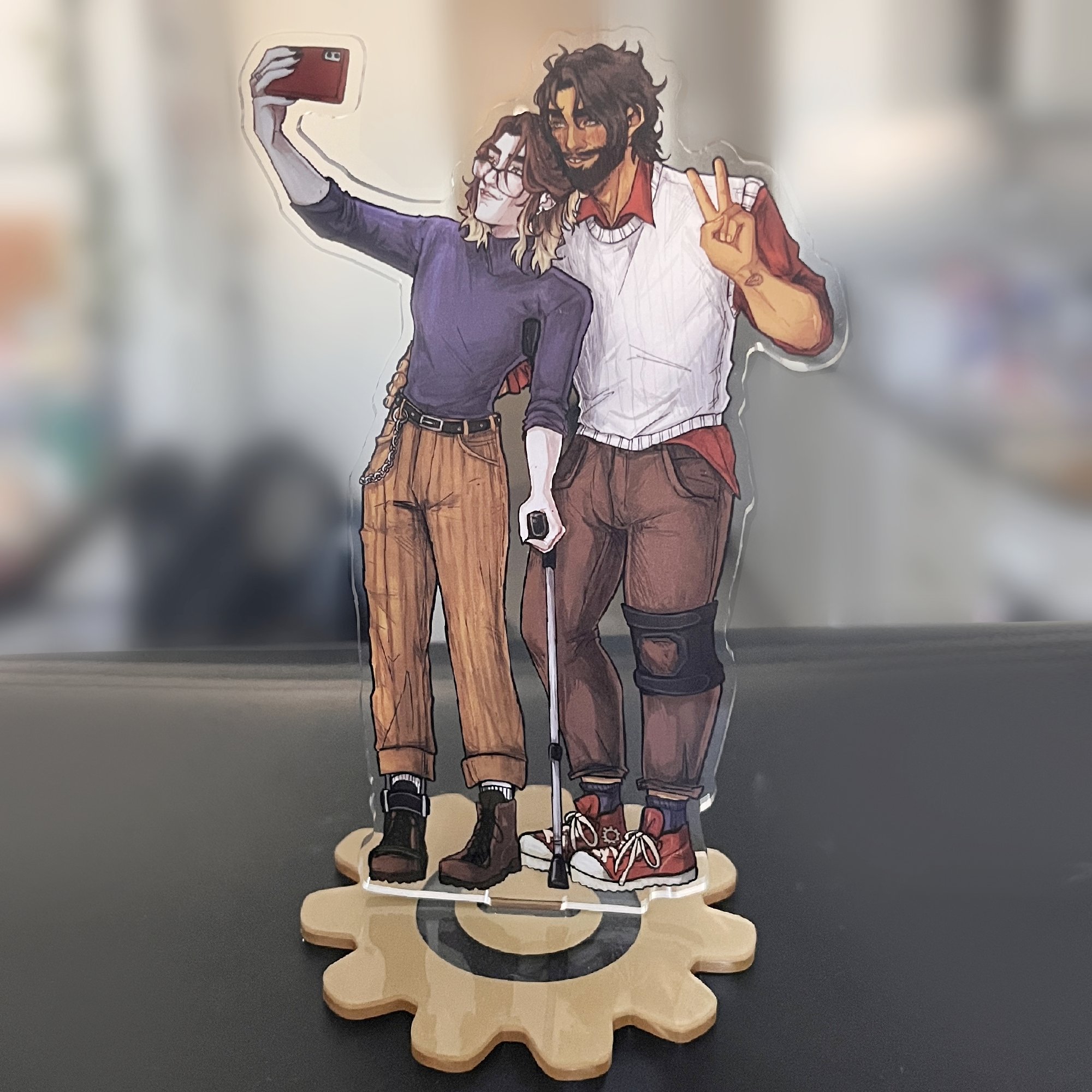 this standee is of jayce and viktor is the perfect companion for your desk or bookshelf!