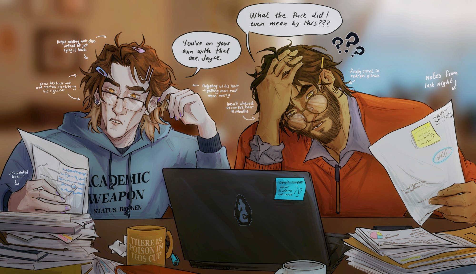 a high-quality print of jayce and viktor from my arcane college au!